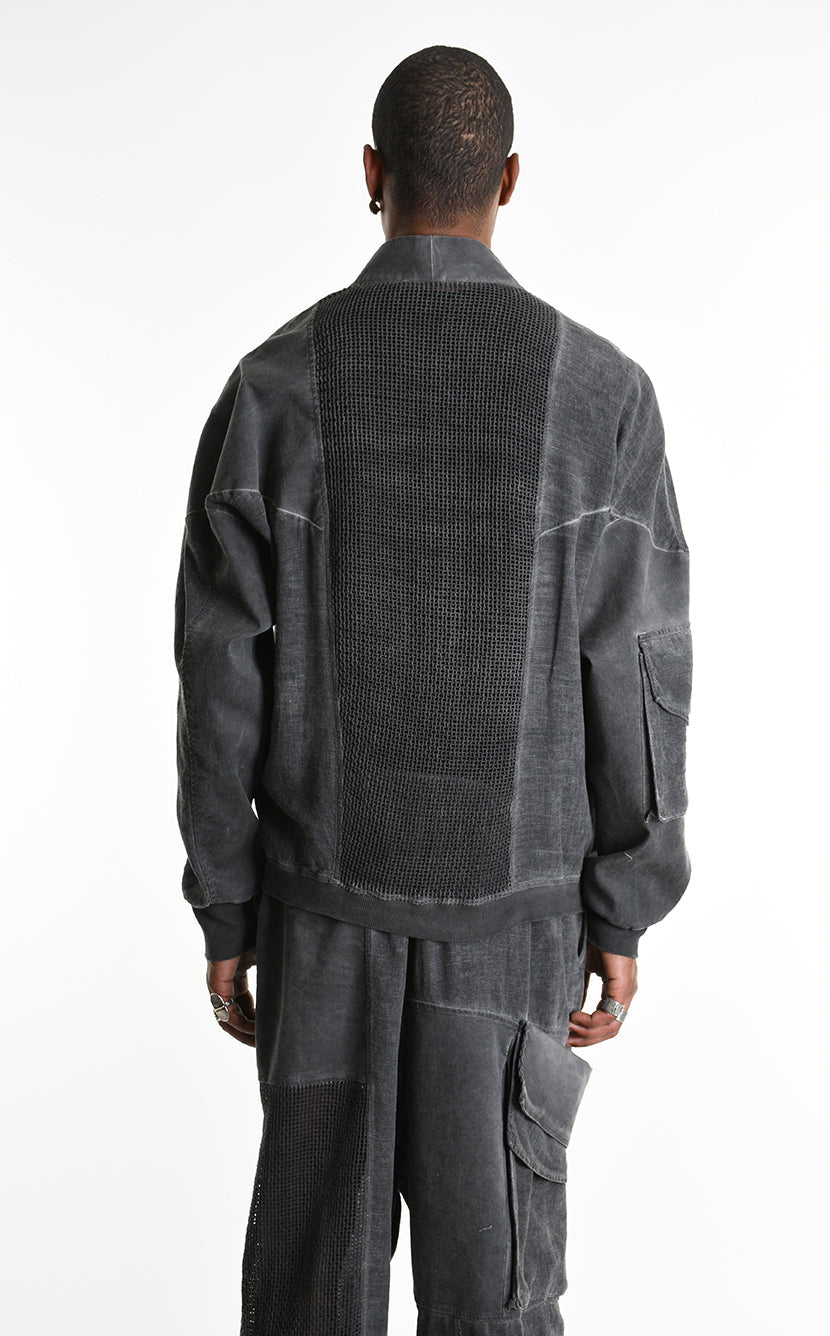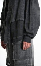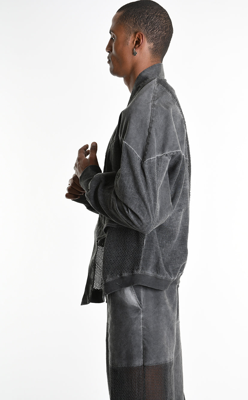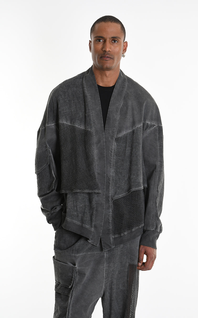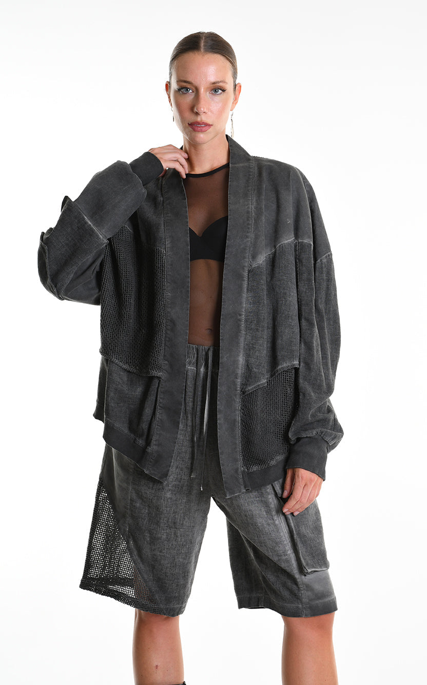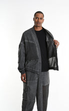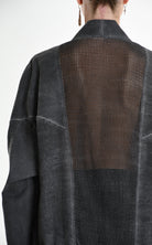 The LA HAINE INSIDE US 3B M1272 asymmetric sport jacket redefines contemporary layering with bold, oversized proportions and multi-fabric construction. Crafted in Italy from a sophisticated linen blend with dyed-cold gabardine and mesh inserts, this unisex piece delivers structured versatility engineered for statement-making style.