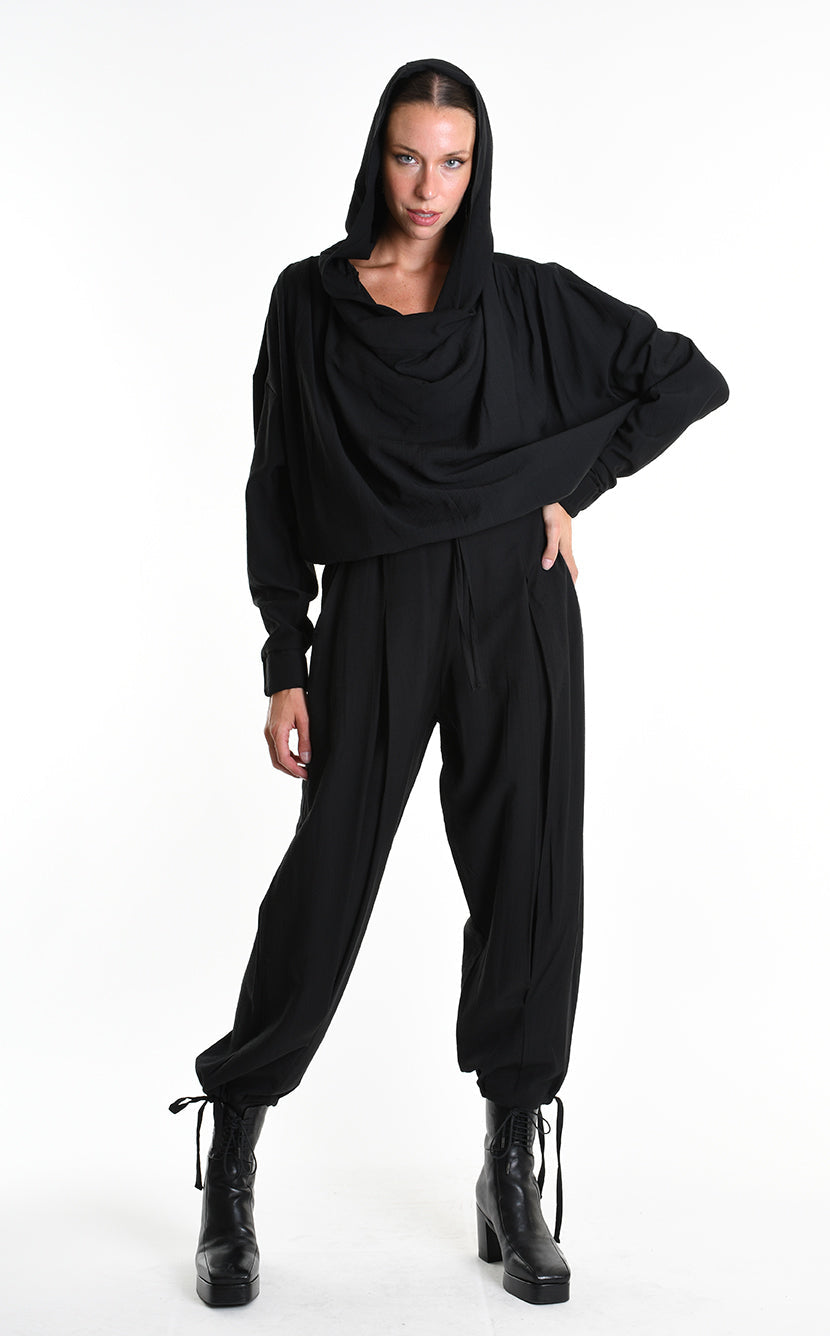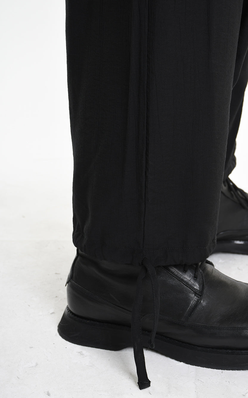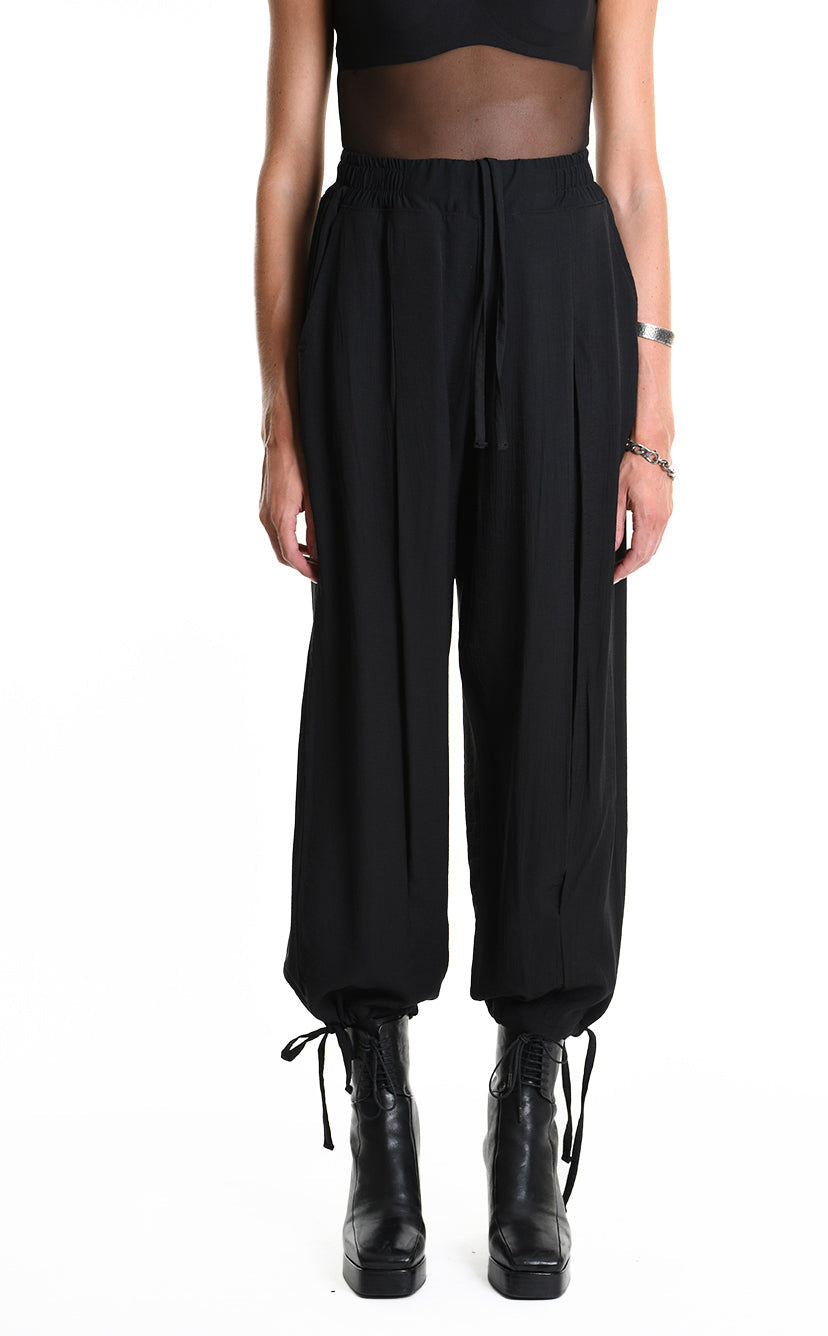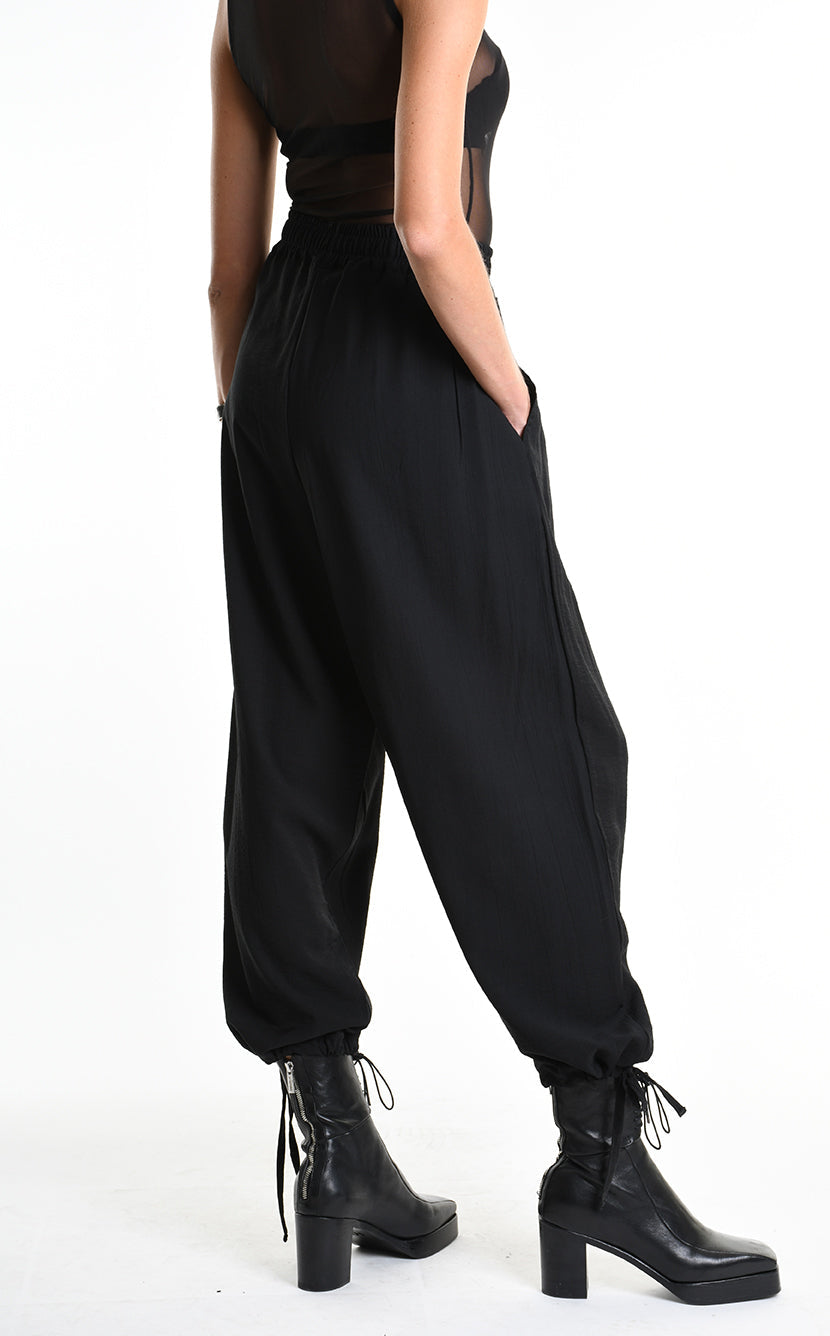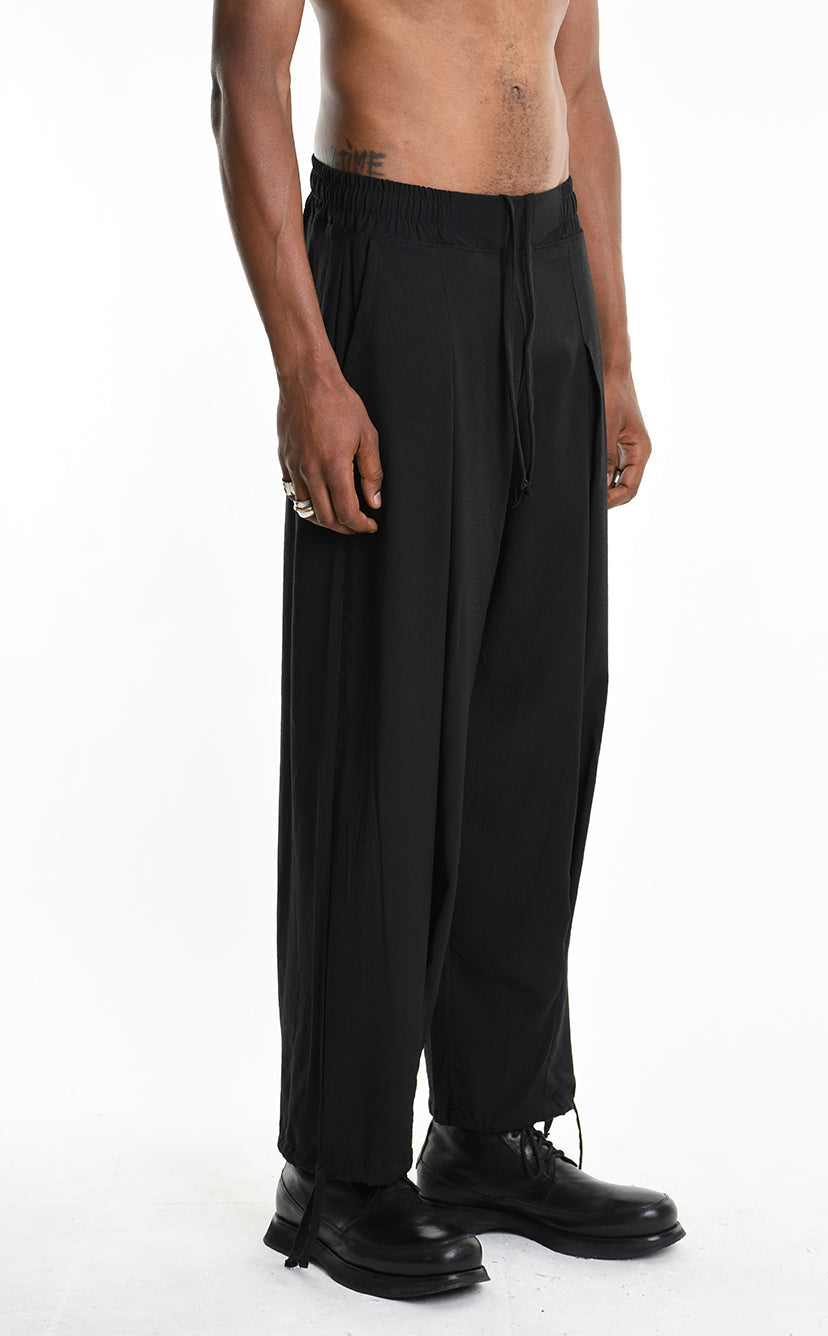 Designed as a unisex silhouette, the M1244 sits wide through the hip and thigh with a relaxed, oversized volume. An elastic waist with drawstring and a coulisse hem let you define the shape — or let it define you.