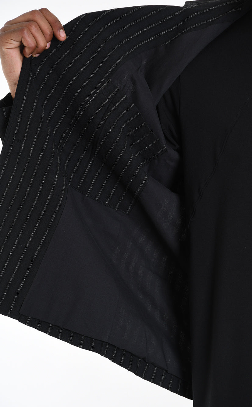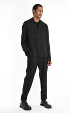 Effortless elegance that commands attention. The M1277 transitions seamlessly from office to evening with its fluid drape and sophisticated stripe detailing. Layer over crisp shirting for refined style or pair with architectural knitwear for contemporary edge. A comfort blazer that refuses to compromise on sophistication.
