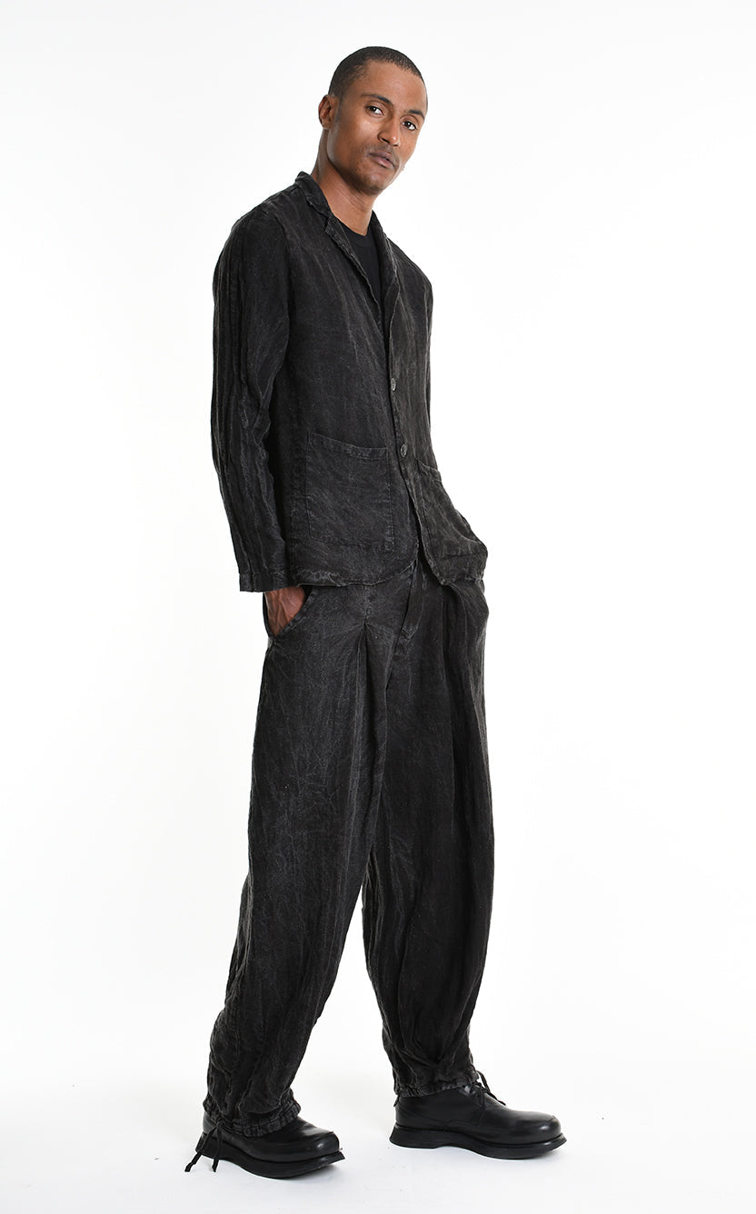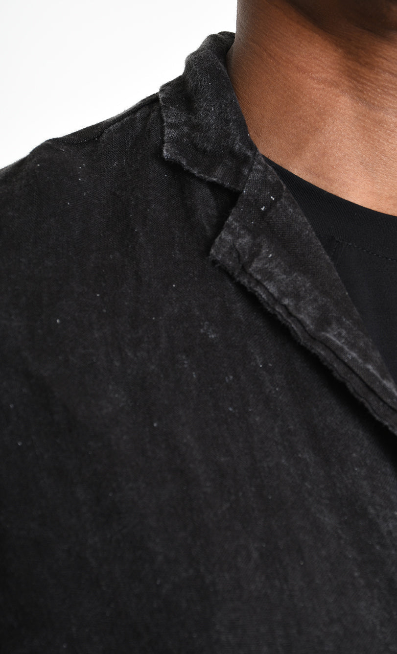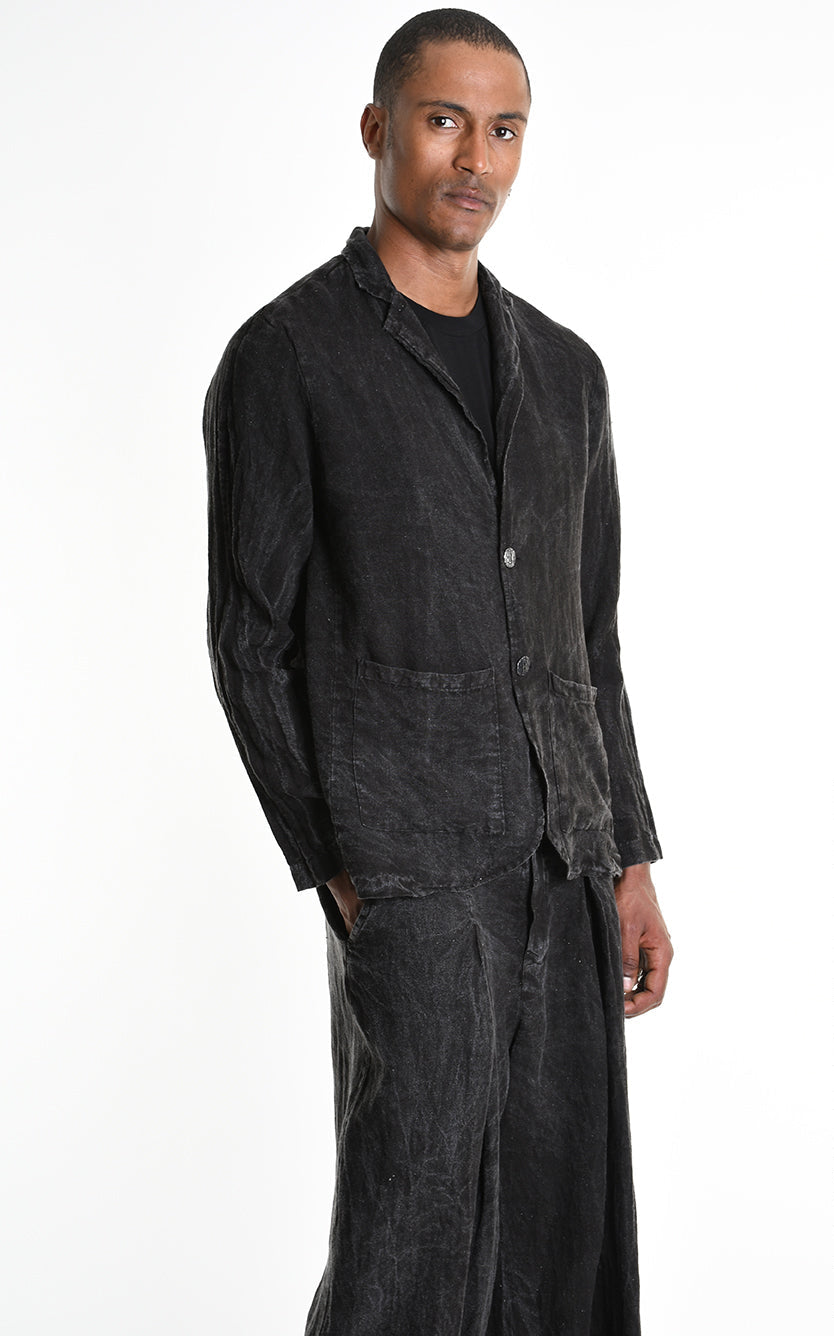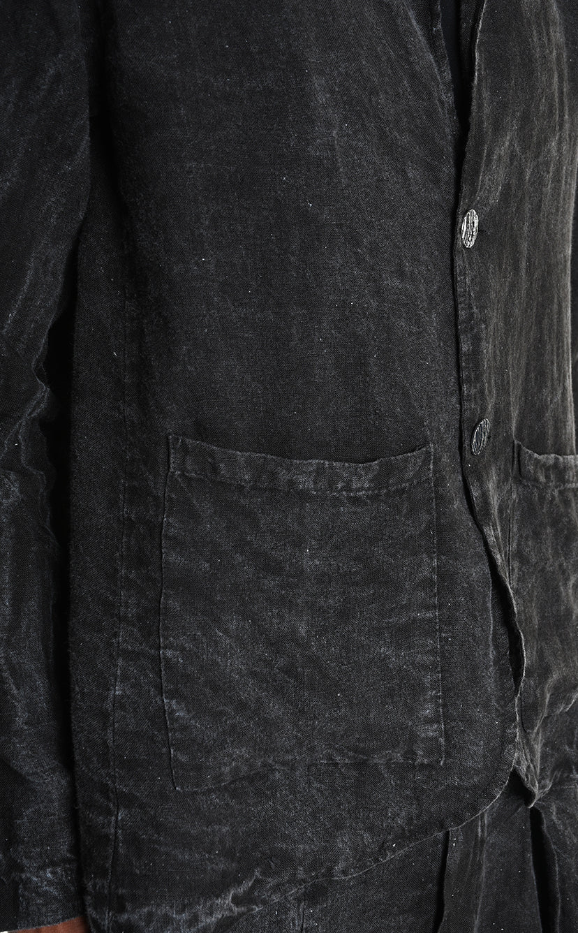 LA HAINE INSIDE US 3V M1219 Regular Blazer | Italian Linen Dyed Cold Marmorized Black