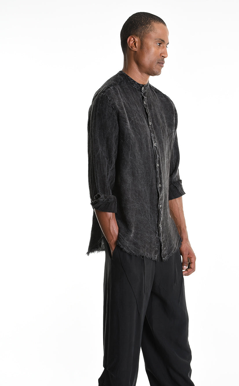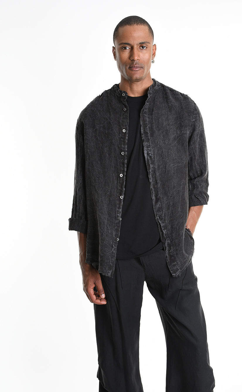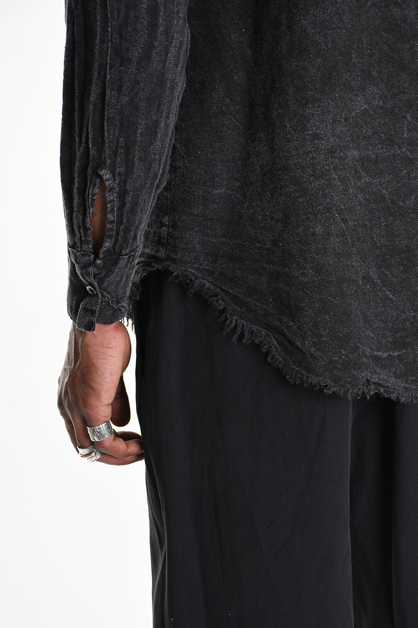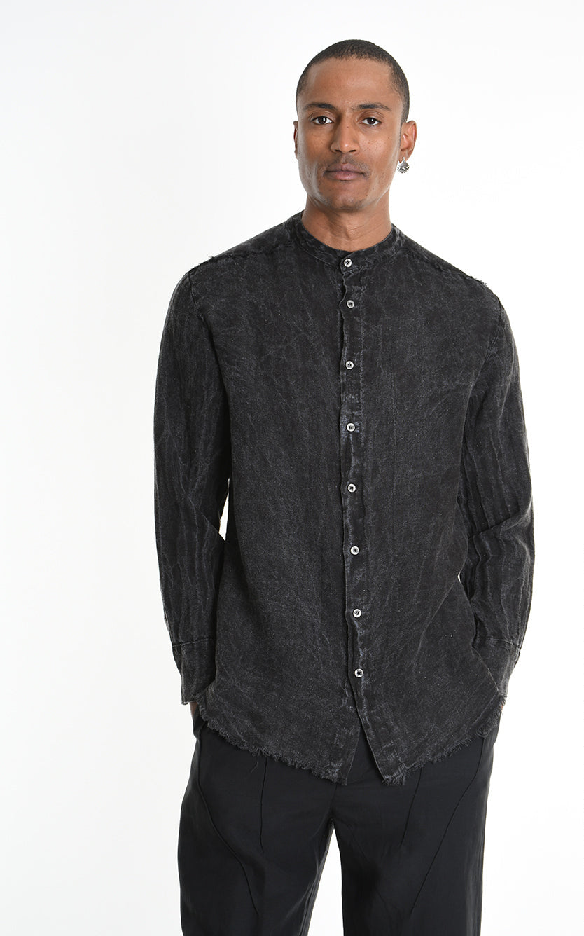 LA HAINE INSIDE US 3V M1223 Regular Shirt | Italian Linen Dyed Cold Marmorized Black