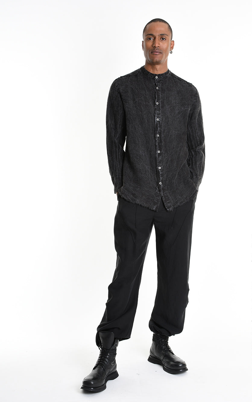 LA HAINE INSIDE US 3R M1235 Comfort Shirt | Italian Linen Knotted Panel Black