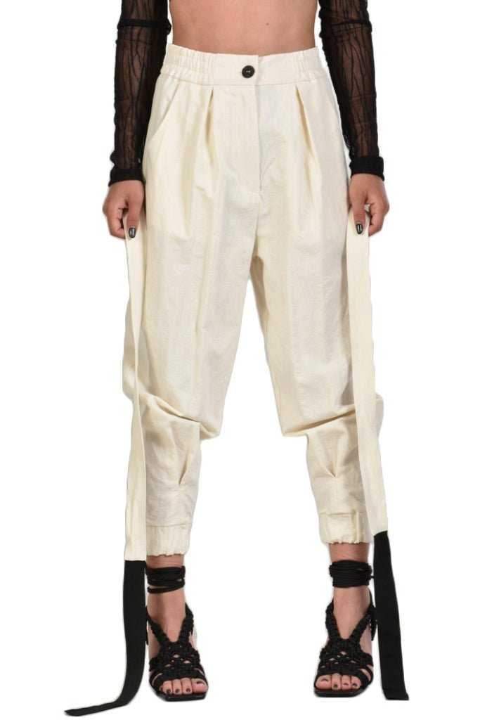 Mit ihrer hohen Taille und dem elastischen Bund bietet diese Hose die perfekte Passform für jeden Körpertyp. Die elastischen Bündchen von Botto sorgen für einen Hauch von Eleganz und Stil, während die Taschen ausreichend Platz zum Verstauen aller wichtigen Dinge bieten.