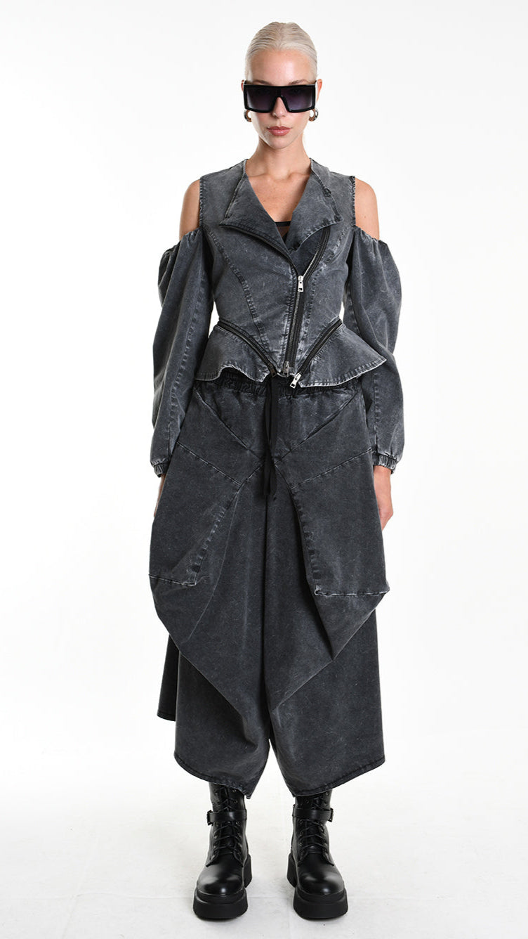 Experience elegance with the A34B W5060 Jacket, crafted in Italy from high-quality 97% cotton and 3% elastane. Its distinctive marmorized finish adds a refined character to the gabardine fabric. Designed with elastic accents at the hem and shoulders, complemented by a zip closure and stylish paneling, this jacket blends comfort with contemporary flair.