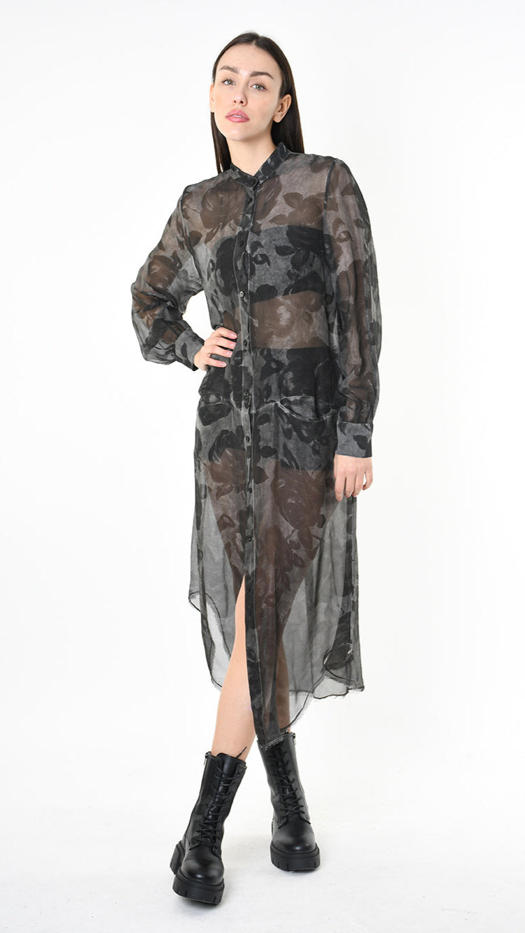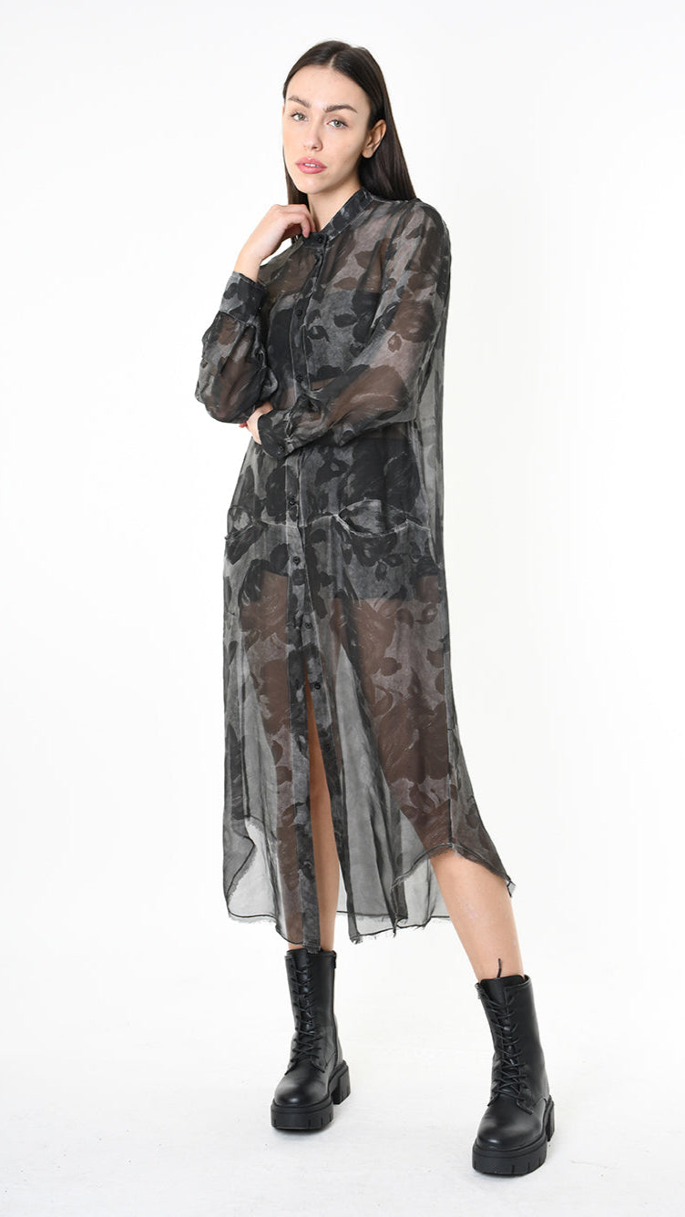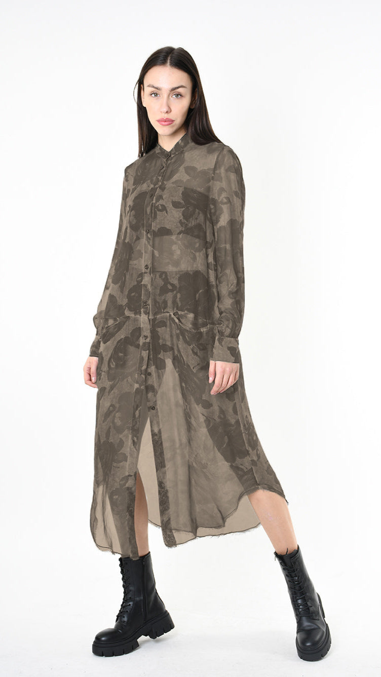 A39B SM43125 CHEMISIER Viscose Silk Dyed Cold Green Tuscany - Grey