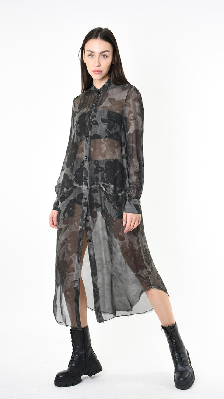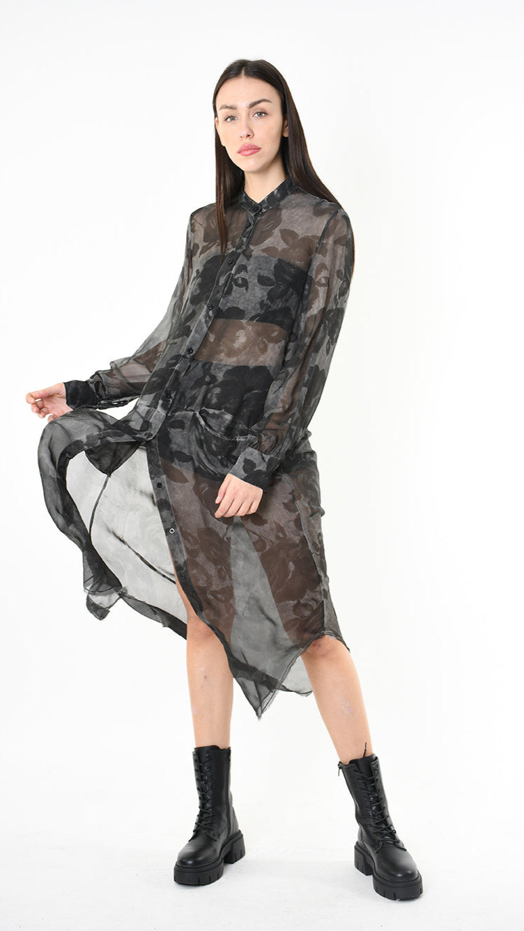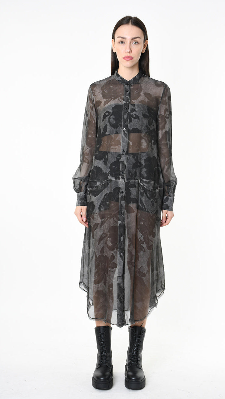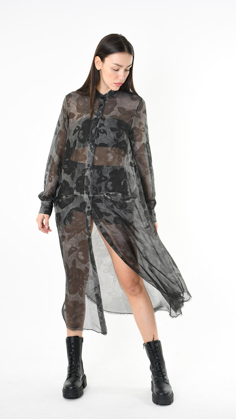 A39B SM43125 CHEMISIER Viscose Silk Dyed Cold Green Tuscany - Grey