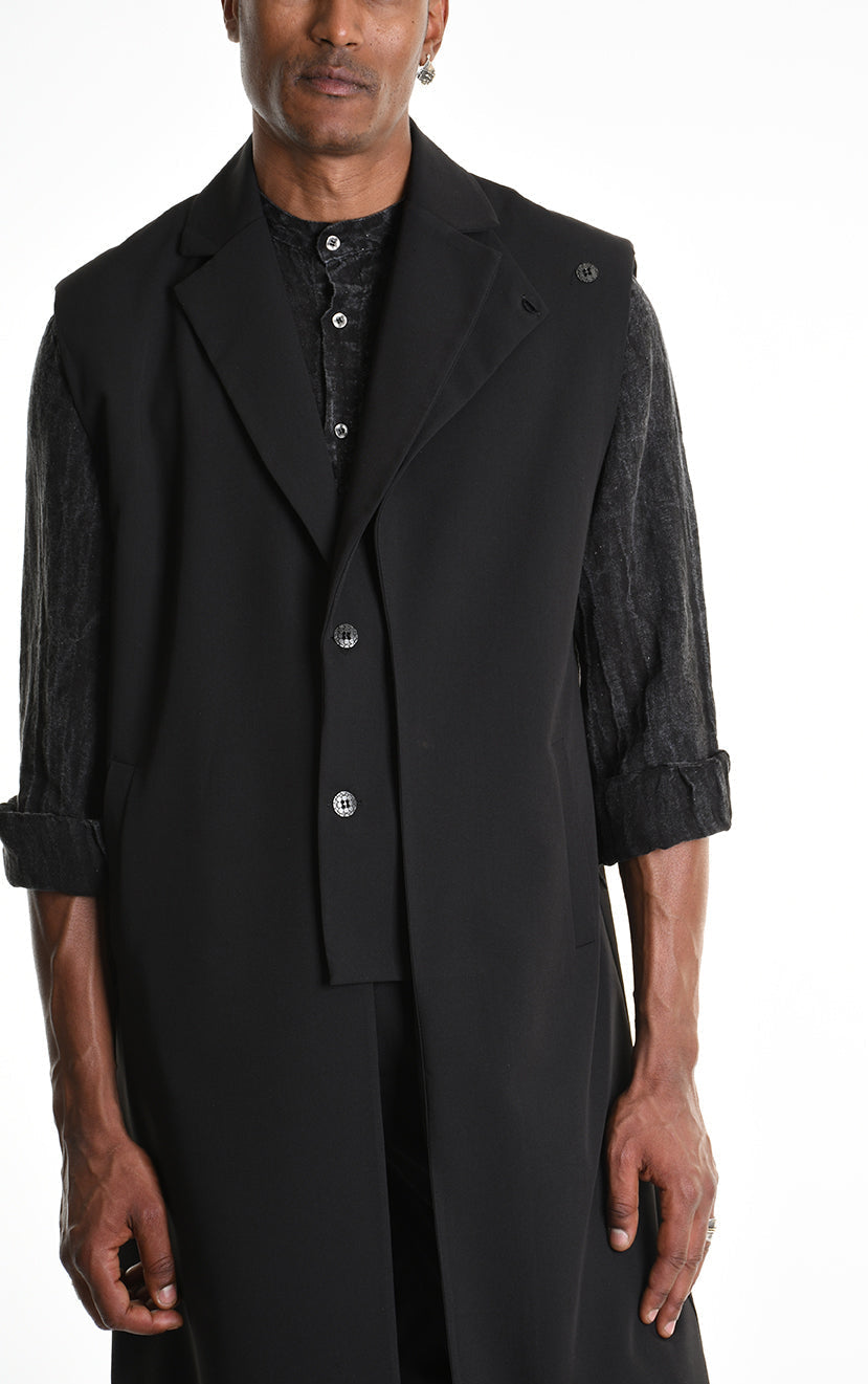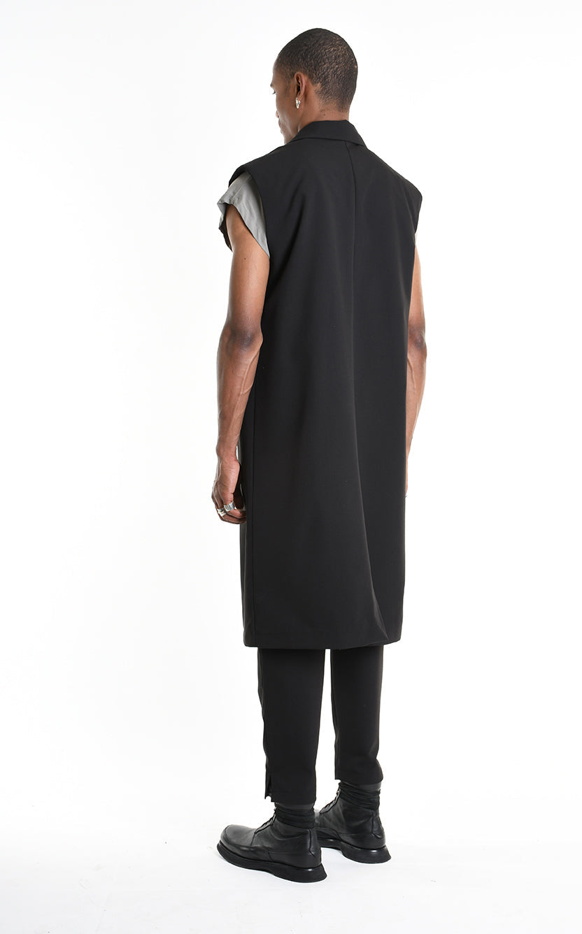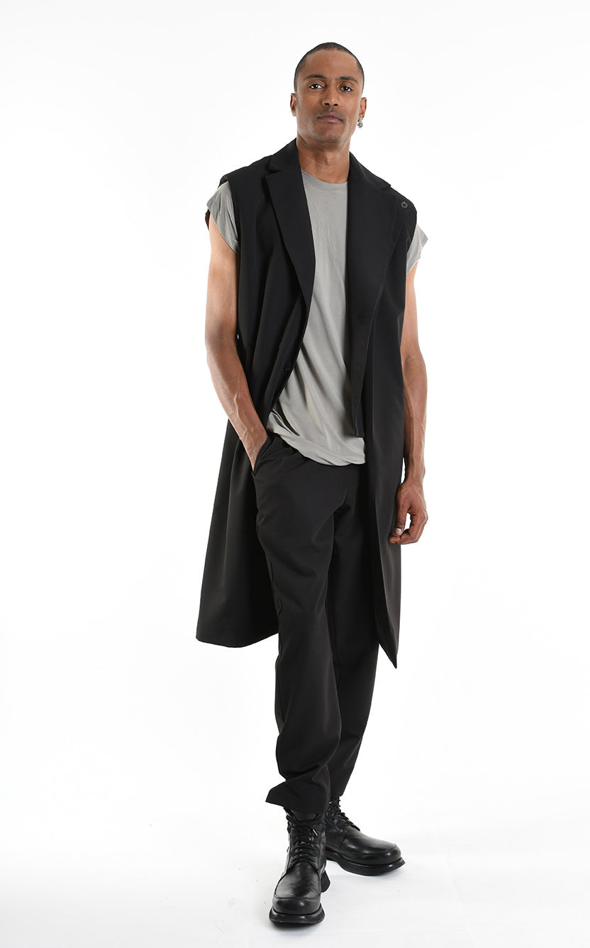 LA HAINE INSIDE US 3R M1231 Long Comfort Gilet | Italian Fluid Stretch Black