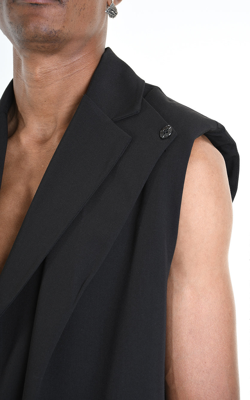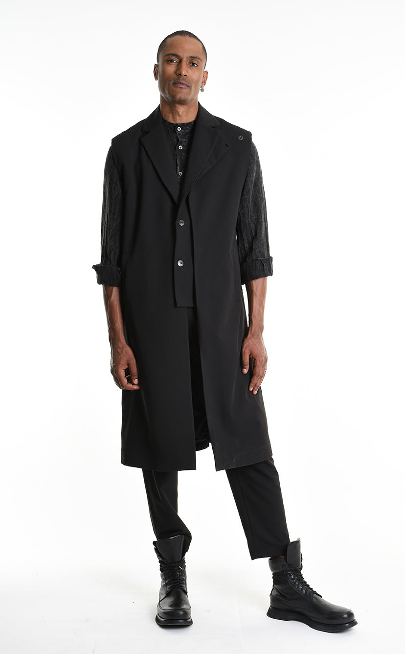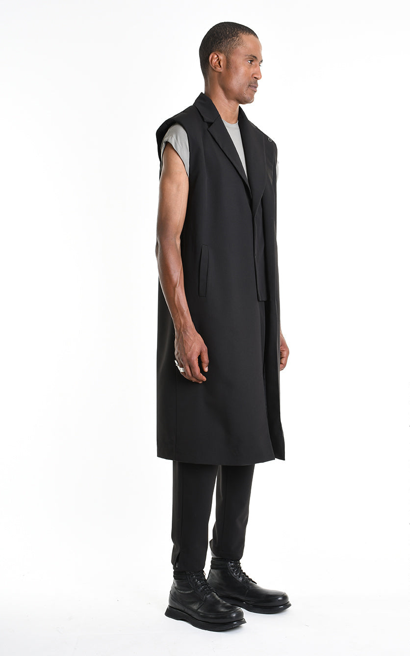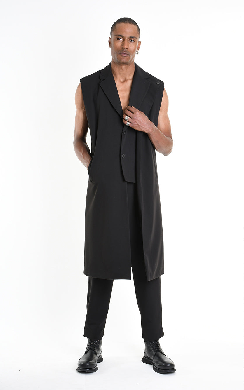LA HAINE INSIDE US 3R M1231 Long Comfort Gilet | Italian Fluid Stretch Black