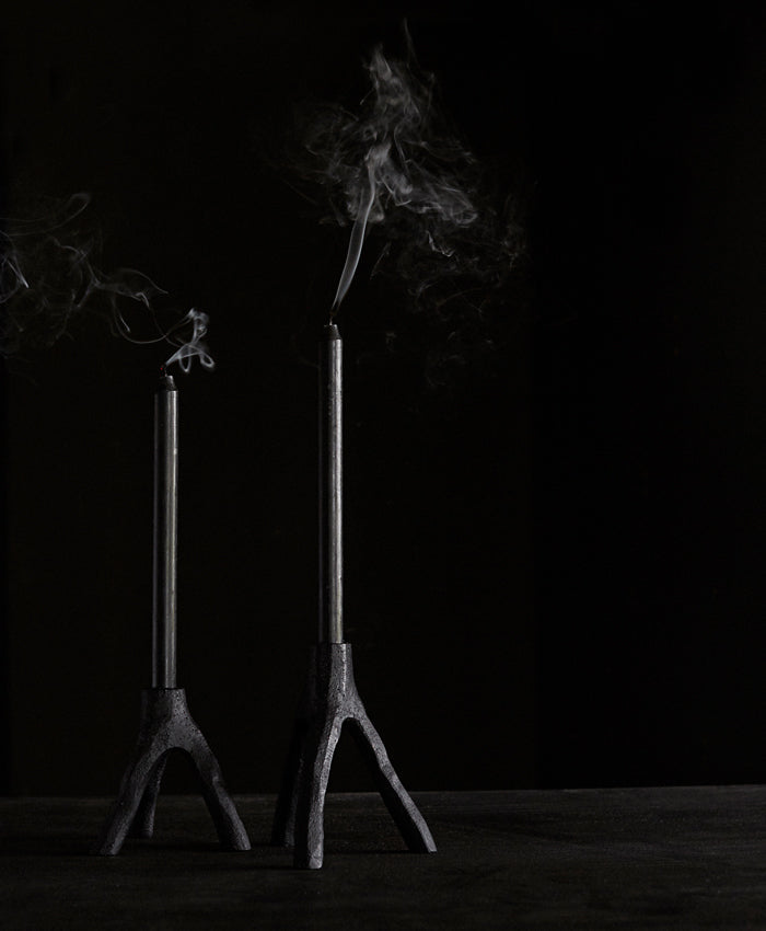 Each Aion L begins as a hand-shaped clay sculpture, capturing the organic irregularities and natural flow of tree branches. This original is then used to create the cast iron piece, preserving the artisan's touch in every curve and detail. The result is a candle holder that feels both raw and refined—a perfect embodiment of the Wabi-Sabi philosophy that MUUBS embraces.