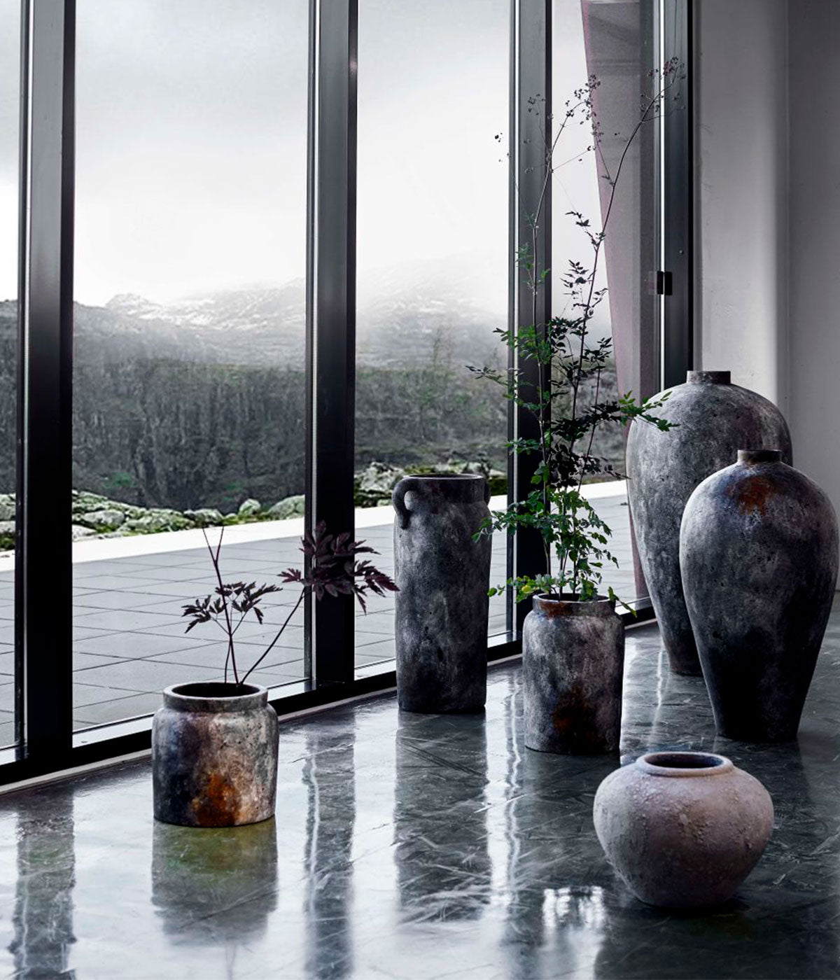 Jar Echo 100 - Rust Grey Terracotta Handmade Vase Ø56xH100 cm MUUBS