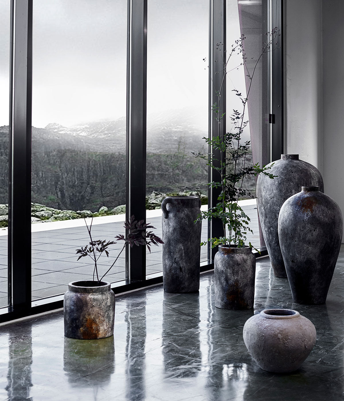 Jar Echo 80 - Rust Grey Terracotta Handmade Vase Ø45xH80 cm MUUBS