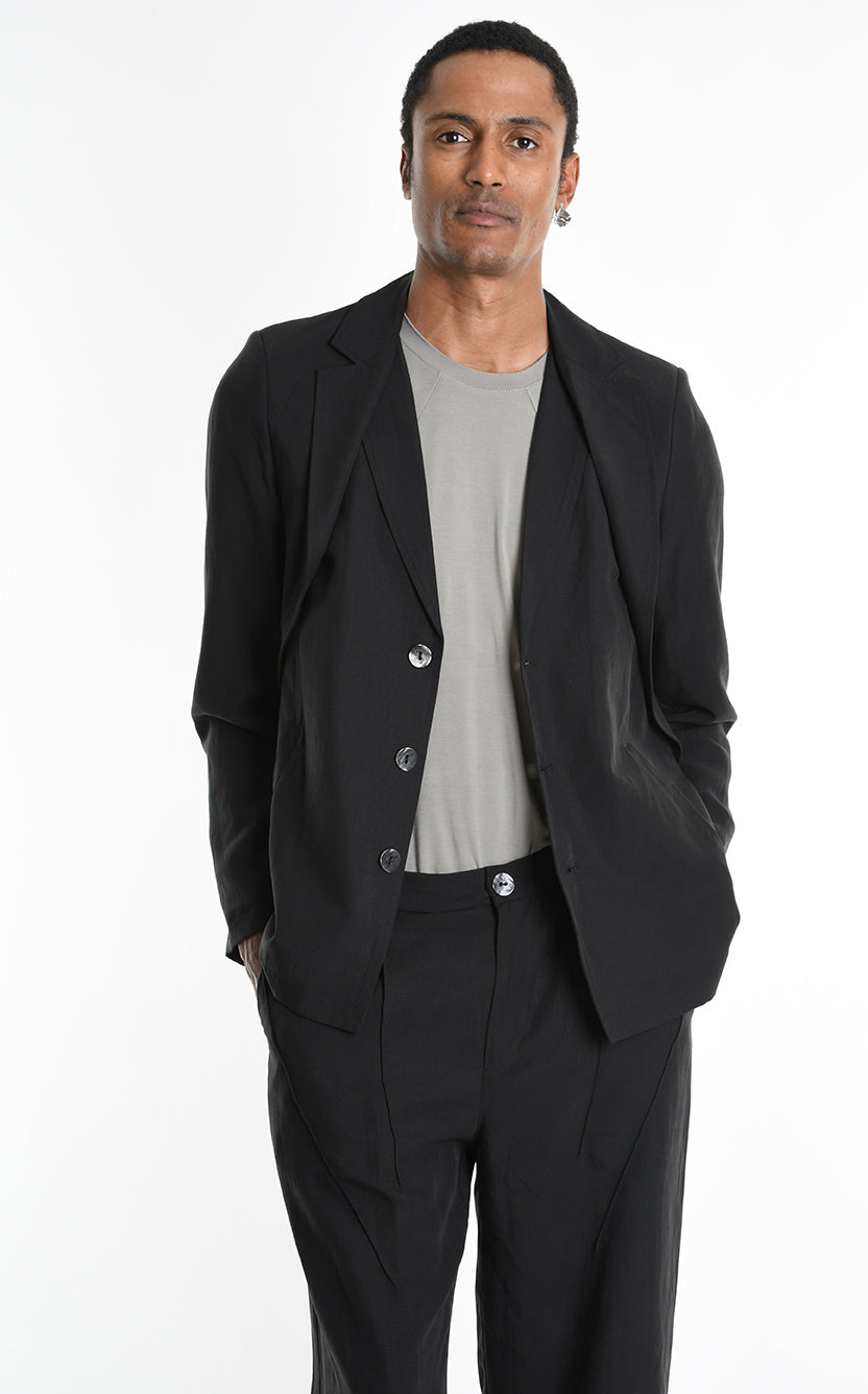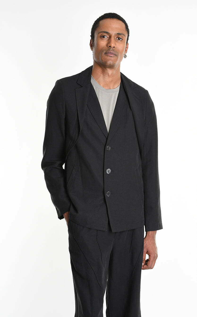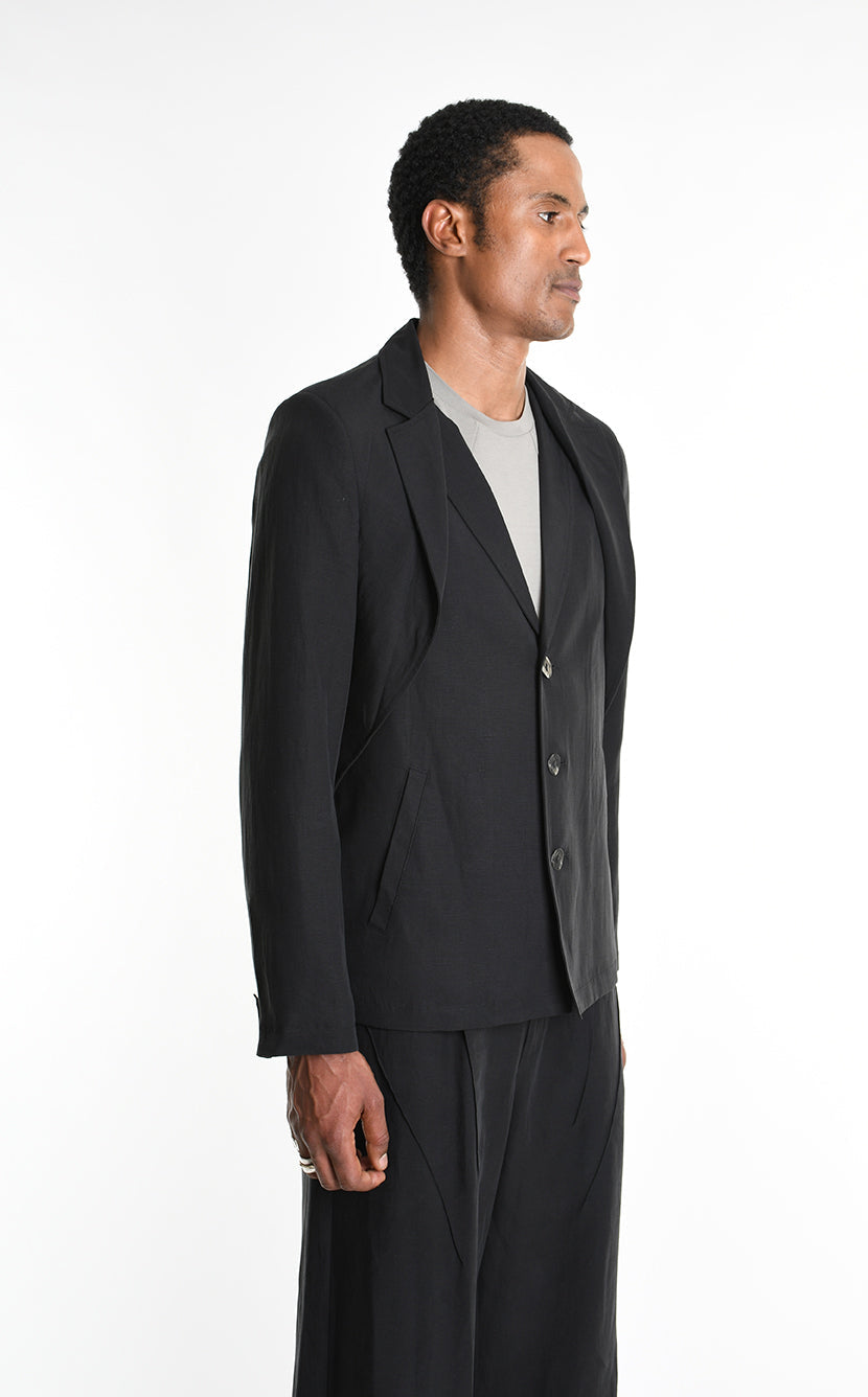 LA HAINE INSIDE US 3G M1249 Regular Blazer | Italian Tencel Linen Black