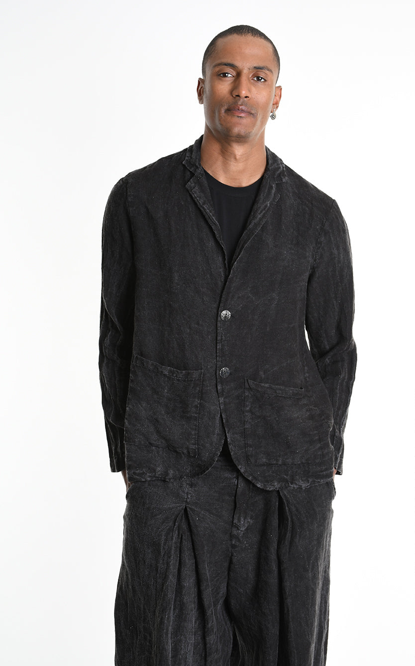 LA HAINE INSIDE US 3V M1219 Regular Blazer | Italian Linen Dyed Cold Marmorized Black
