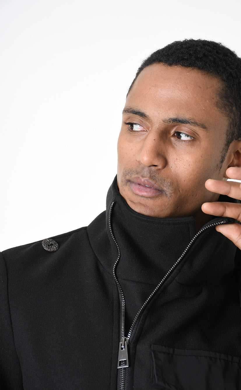 The A33B LM18525 Coat by LA HAINE INSIDE US offers a blend of style and functionality. Made with high-quality regular cloth and nylon insert in a sleek black color, this jacket is both durable and fashionable. The coat comes in sizes M, L, XL, and XXL, ensuring a comfortable fit for all body types. The viscose fabric provides a soft and breathable feel. Stand out with this unique piece that combines a classic design with modern elements. Elevate your wardrobe with the A33B LM18525 COAT Regular Cloth & Nylon Insert Black.