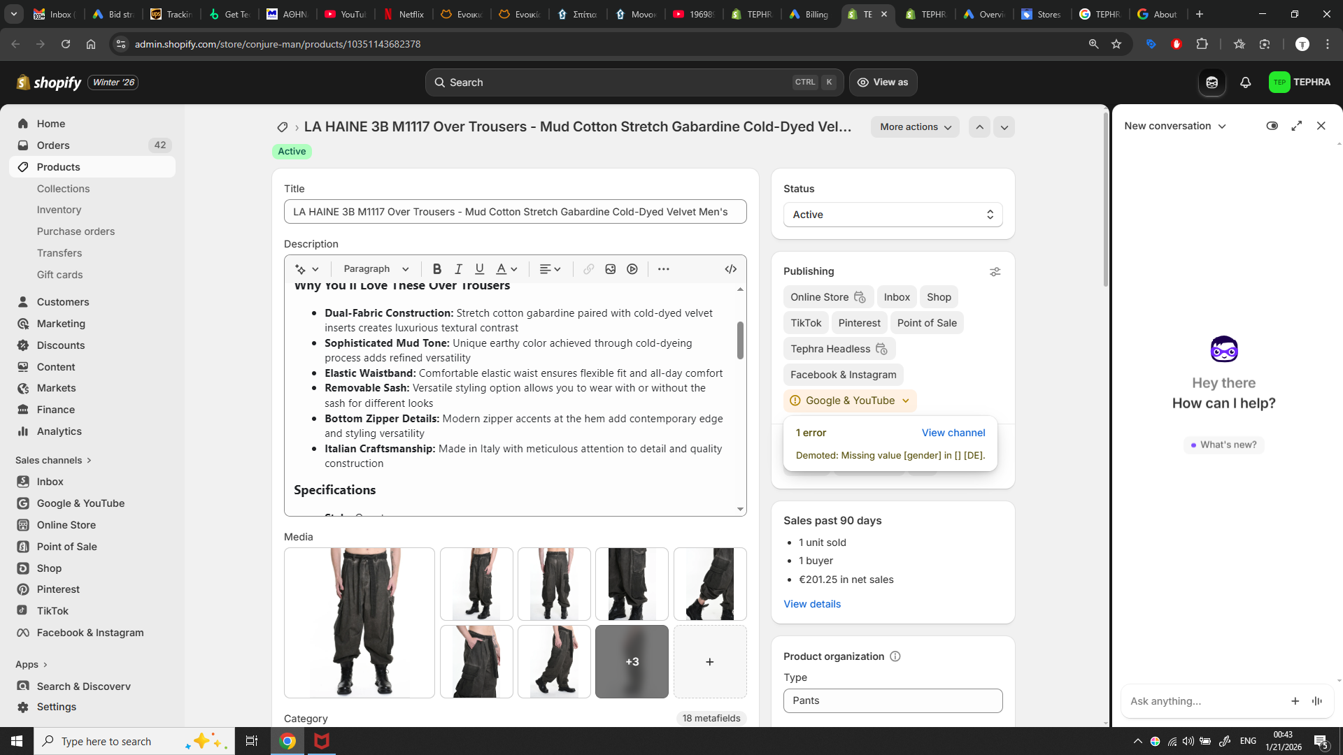 La silhouette architecturale rencontre le savoir-faire italien dans le surpantalon LA HAINE 3B M1117. La luxueuse gabardine de coton stretch couleur boue est rehaussée d'empiècements en velours teint à froid, créant un contraste de textures sophistiqué qui ne passe pas inaperçu.