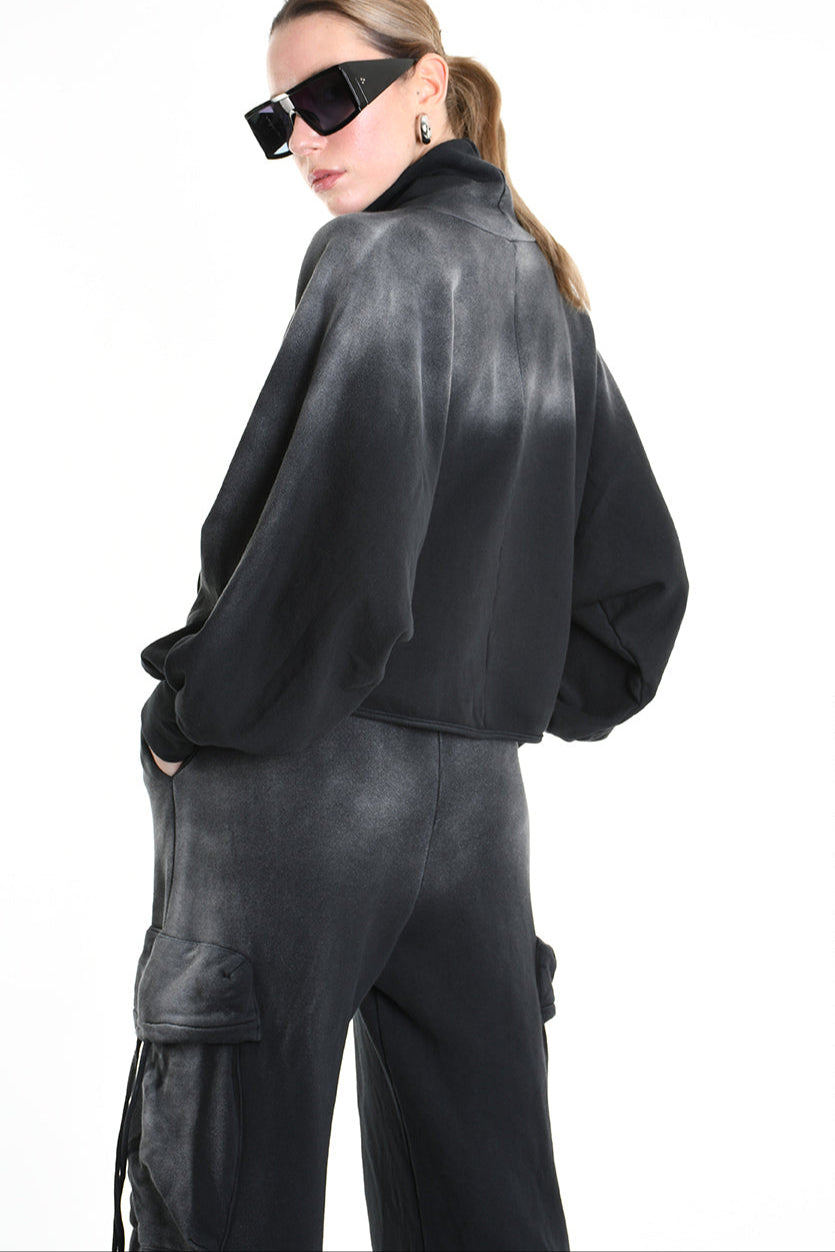 4V W5226 SWEATER Fleece Crop Chorosive Treatment Black