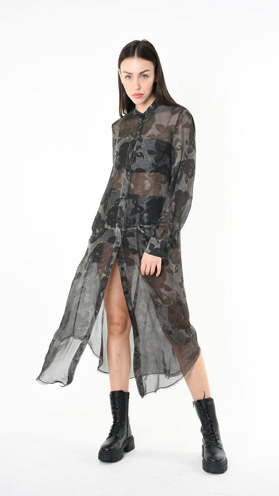 A39B SM43125 CHEMISIER Viscose Silk Dyed Cold Green Tuscany - Grey